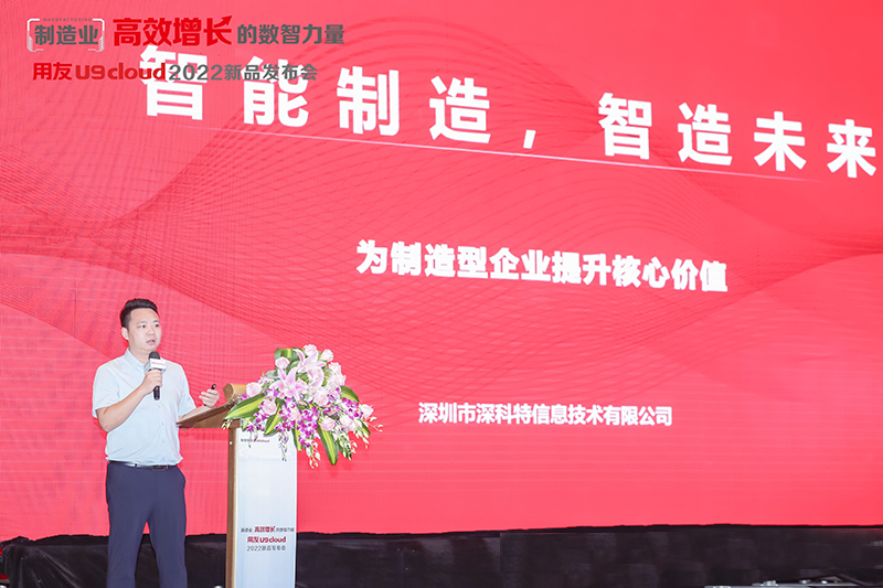 2022年6月21日,深科特出席用友U9 cloud 新品發布會-武漢站,攜手用友并肩作戰為制造業高效增長提供數智力量!MOM/MES高級顧問現場進行了《智能制造,智造未來》主題分享,聚焦智造、專業提升、再創輝煌。
